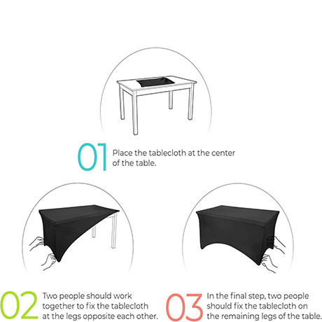 Made from 90% polyester and 10% spandex, this 190 GSM stretch table cover is wrinkle-resistant and designed for repeated use. Its durable fabric ensures a secure fit without the need for ironing. Designed for 6-foot tables (72L x 30W x 30H Inches), this two-way stretch spandex cover features reinforced leg pockets to keep it firmly in place, preventing slipping for a sleek, professional look.